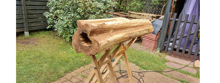Was beginnt man mit einem solchen Stamm - erst einmal nichtssagend aber innen hohl? Man entrindet ihn, öffnet ihn und dann war es ein Selbstläufer. Ein Torso - männlich oder doch nicht ...?