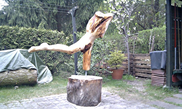 Diese Skulptur ist aus einem Teil der Wurzel einer Douglasie entstanden, die wir leider fällen mussten.